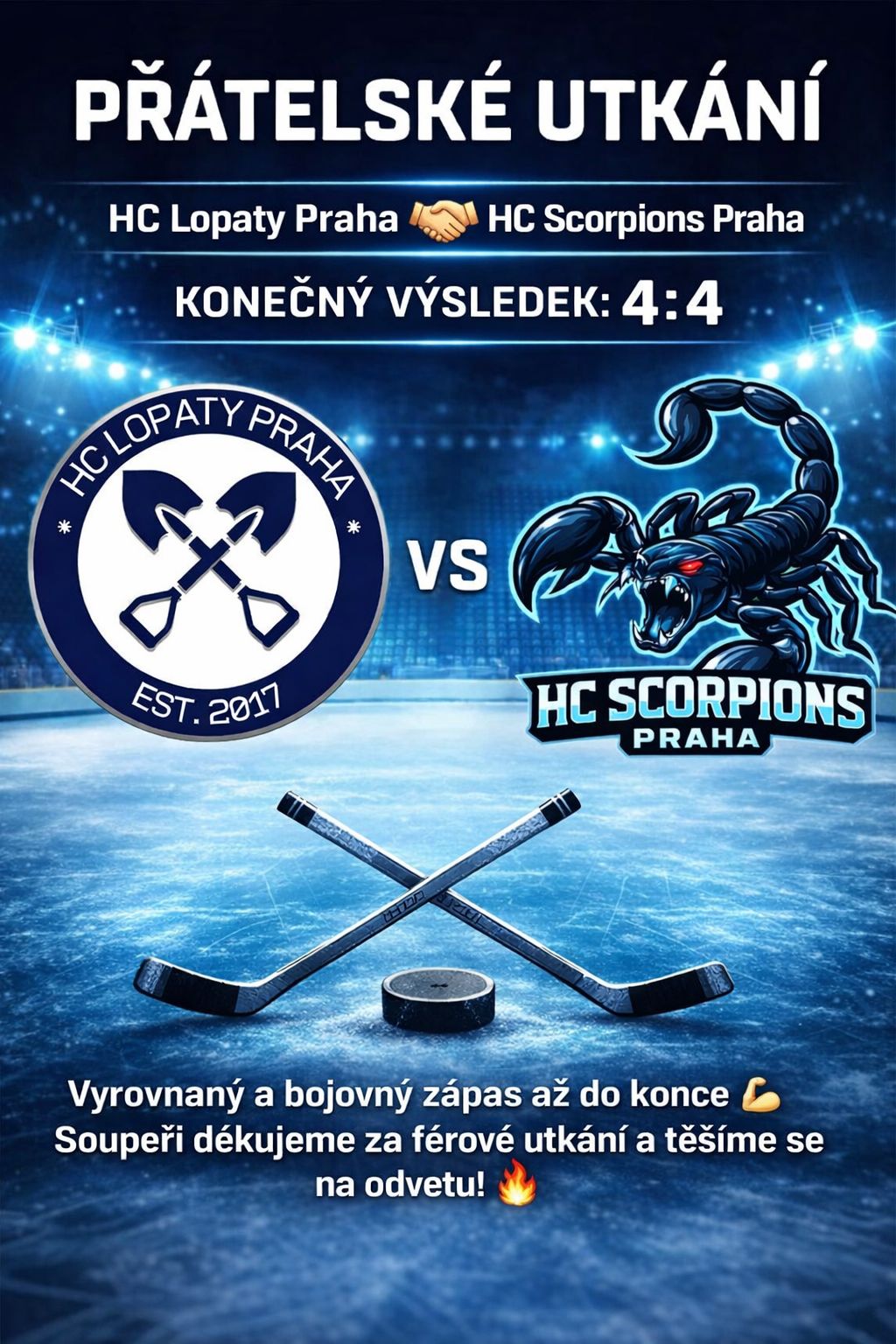 Bojovný výkon a skvělá práce gólmanů na obou stranách. HC Lopaty přivezly na led do Letňan mladý tým plný elánu a chuti útočit ale i dobře bránit. HC Scorpions ale nezůstali pozadu!