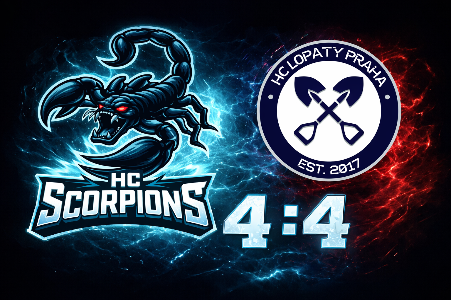 HC Lopaty šly hned v úvodu do vedení 1-0. Vzápětí jsme díky našemu nejlepšímu střelci Dominiku Bláhovi srovnali na 1-1. V průběhu utkání ještě přidal další 2 góly (jeden z trestného střílení po faulu) a dosáhl tak i ve druhém zápase na hattrick. Prostřední část utkání se nesla ve znamení zvyšujícího se náskoku HC Lopaty. Scorpions bušili do brankáře soupeře ze všech stran, ten ale většinu střeleckých pokusů chytil. Posledních pár desítek vteřin šla na led 3. lajna Scorpions a podařilo se ji doslova dotlačit puk do brány a srovnat tak na 4-4. HC Scorpions tedy o kousek a se štěstím unikli porážce a na svou první výhru stále čekají.